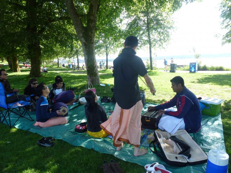 We are humbly sharing our activities yesterday at Stanley Park. We had some kirtan, small amount of prasadam distributed, book distribution with the flyers inserted in the book, and at the end we took prasadam.